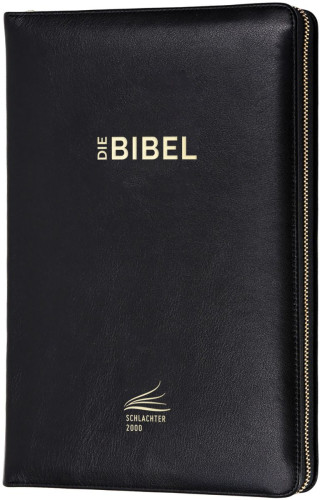 ALLEMAND, BIBLE SCHLACHTER 2000, CUIR, TRANCHE OR, FERMETURE ÉCLAIR