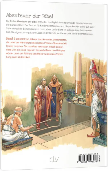 Band 3 berichtet von Jakobs Nachkommen, den Israeliten, die unter der Herrschaft eines bösen Pharaos Sklavenarbeit leisten mussten. Die Israeliten vertrauten jedoch darauf, dass Gott sie eines Tages in das verheissene Land bringen würde. Unter der Führung von Mose wurde diese Verheissung dann Wirklichkeit.