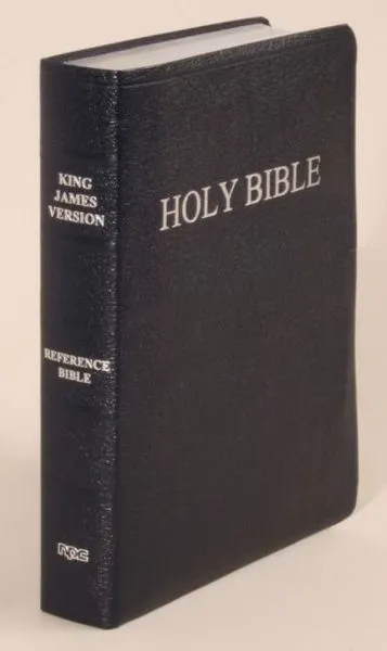 Bible à caractères moyens avec références centrales dans une reliure cartonnée recouverte de vinyle. Les caractéristiques spéciales de cet ouvrage classique comprennent des cartes en couleur et un répertoire géographique. [Était 4A/BK]
