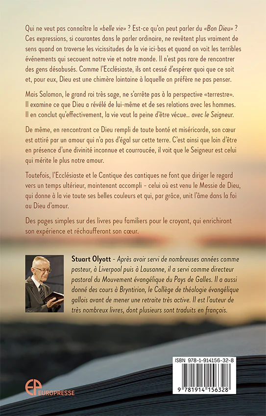 Quand on voit les terribles événements qui secouent notre vie et notre monde, il n’est pas rare de rencontrer des gens désabusés. Comme l’Ecclésiaste, ils ont cessé d’espérer. Mais Salomon examine aussi ce que Dieu a révélé de lui-même et de ses relations avec les hommes. Il en conclut qu’effectivement, la vie vaut la peine d’être vécue… avec le Seigneur.
